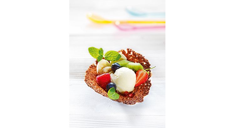5) Laissez sécher quelques minutes et garnissez vos tulipes de fruits frais découpés. Pour une touche gourmande, ajoutez une boule de glace juste avant de servir.
