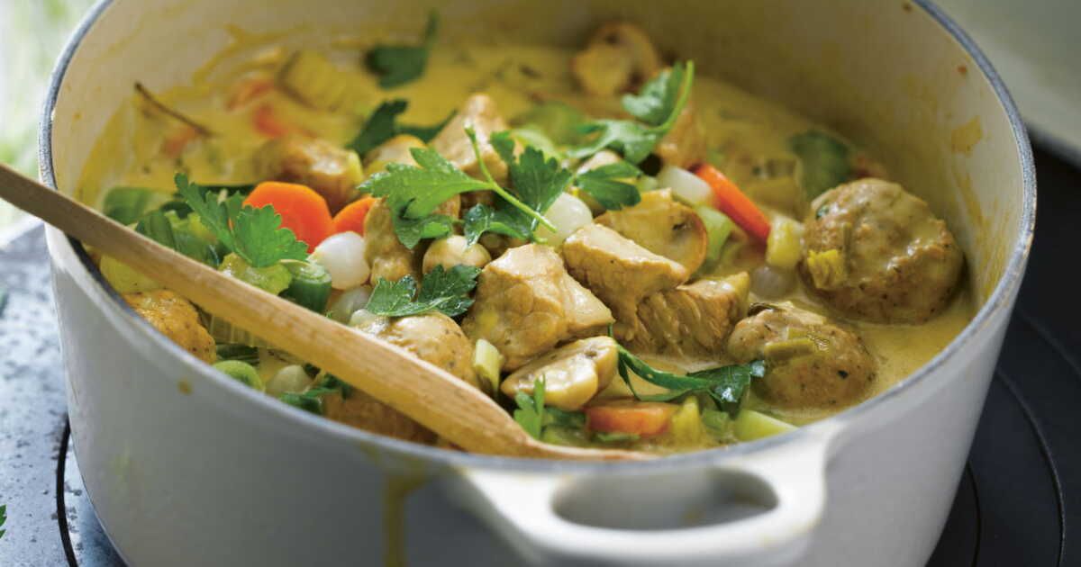 - À la fin de la cuisson, retirez la viande et les légumes, incorporez la crème et ajustez l'assaisonnement.