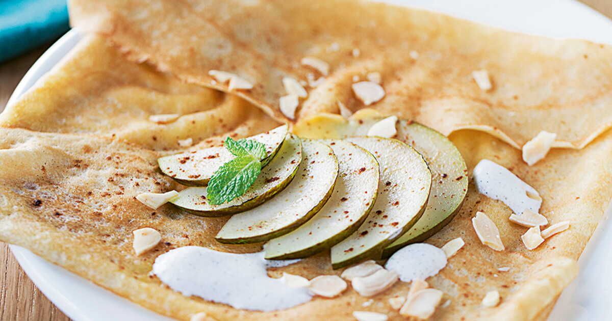 Les crêpes poire amande et écume de vanille offrent une expérience gustative unique. La douceur de la poire se marie parfaitement avec la richesse de l'amande, tandis que l'écume de vanille apporte une touche de légèreté.