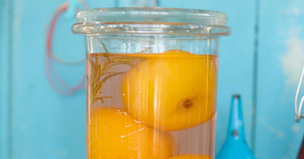 - Mettez les quartiers de pêches dans le sirop et laissez mijoter pendant 5 à 7 minutes.
