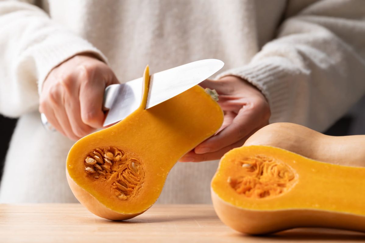 Apprenez à couper votre courge butternut sans danger, grâce à cette technique simple et efficace.
