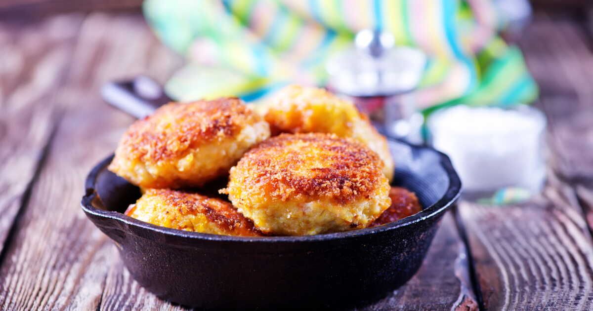 Répétez l'opération avec le reste des ingrédients. Passez chaque bouchée dans de la farine assaisonnée de piment, sel et poivre, dans un œuf battu, puis dans de la chapelure. Faites chauffer un filet d'huile neutre dans une poêle et faites dorer soigneusement chaque bouchée des deux côtés. Pour assurer une cuisson homogène, n’hésitez pas à couvrir la poêle.