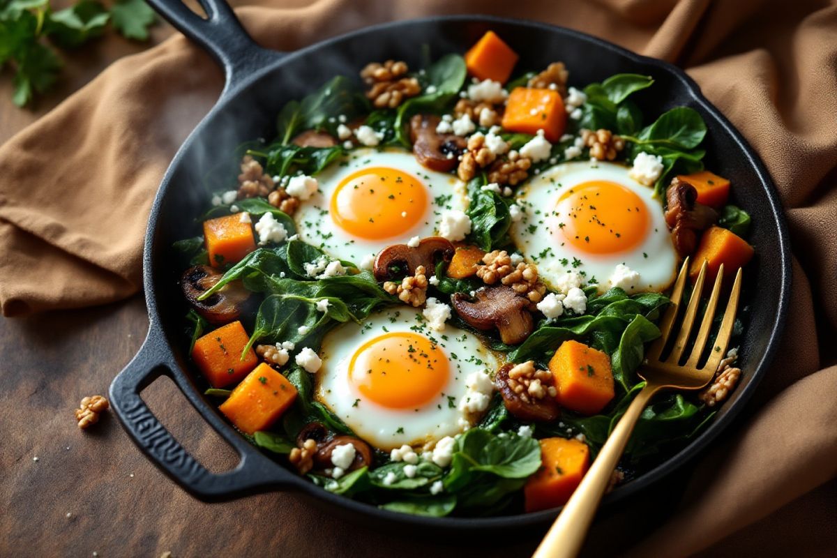 À l’arrivée de l’automne, lorsque la nature se pare de ses plus belles couleurs, le besoin de plats réconfortants se fait sentir. Réveillez vos papilles avec une poêlée d’épinards revisitée qui ravira toute la famille. Cette recette, rapide et savoureuse, met à l’honneur les épinards souvent négligés. Avec des arômes d'ail et d'oignon légèrement dorés, une feta onctueuse et des œufs brouillés crémeux, vous serez transporté par un tourbillon de saveurs. Partagez ce plat autour d’une belle tablée ou savourez-le lors d’un déjeuner improvisé, chaque bouchée vous promet convivialité et délicatesse à cette saison riche en inspirations.