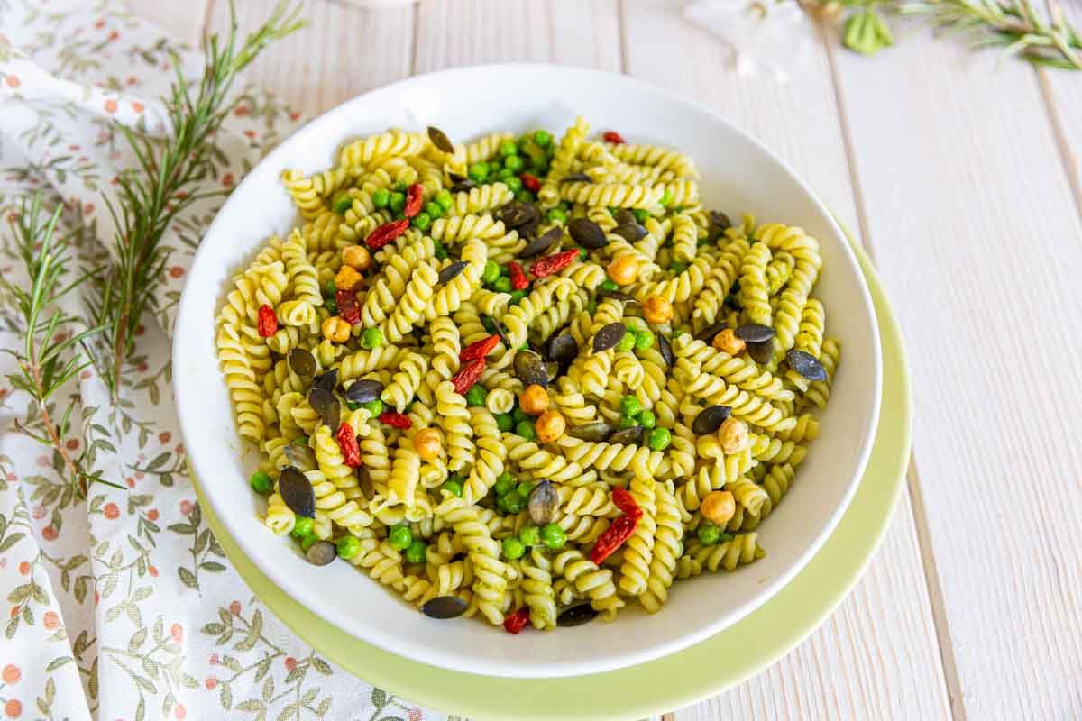 Ce pesto est une alternative aux recettes classiques. Associez des petits pois et des épinards pour une texture crémeuse qui enrobera parfaitement vos pâtes. Pour rehausser le tout, n'hésitez pas à parsemer votre plat d'un mélange de graines ou de noisettes concassées. Et si vous aimez la viande, ajoutez des dés de bacon grillés ou des chips de jambon cru pour une touche savoureuse.