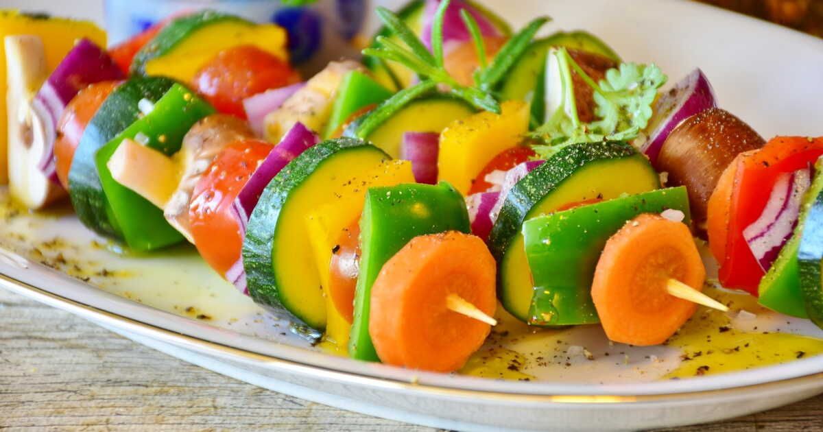 - Brochettes de légumes : Alternez poivrons, courgettes, oignons et fromage Haloumi sur des brochettes, badigeonnez d'huile d'olive puis grillez-les pendant 10 minutes.