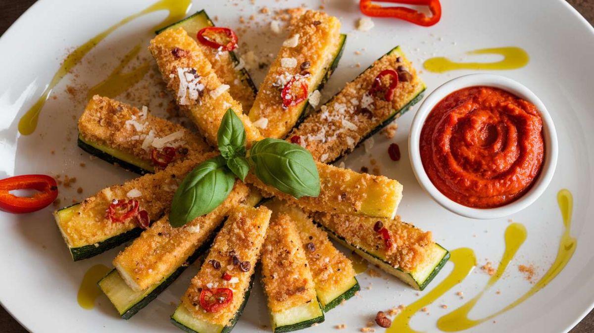 Les frites de courgette panées, servies avec une tapenade de poivrons, représentent une alternative à la fois saine et délicieuse aux frites traditionnelles. Ce plat, croustillant à l'extérieur et fondant à l'intérieur, est parfait pour ceux qui souhaitent savourer une bonne recette tout en prenant soin de leur diète. Grâce à une cuisson au four, cette préparation met en valeur les saveurs naturelles des légumes tout en ajoutant une note gourmande grâce à une panure dorée.