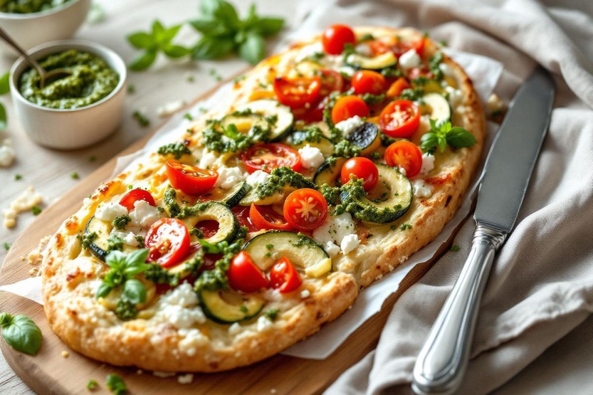 Etalez la pâte sur une plaque huilée et garnissez-la de légumes. Ajoutez des zestes de citron, un filet d'huile d'olive, puis enfournez à 210°C pendant 25 à 30 minutes pour une croûte dorée et parfumée.
