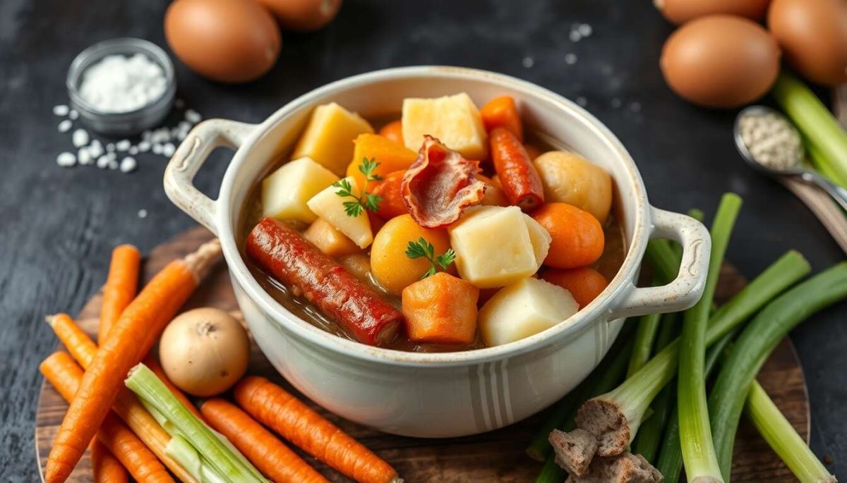 Pour servir, optez pour de grands bols rustiques et des couverts en bois, un choix qui rappelle la chaleur de la cuisine traditionnelle. Enfin, associez ce plat réconfortant à un vin rouge corsé, comme un Bordeaux, pour une expérience gustative mémorable.