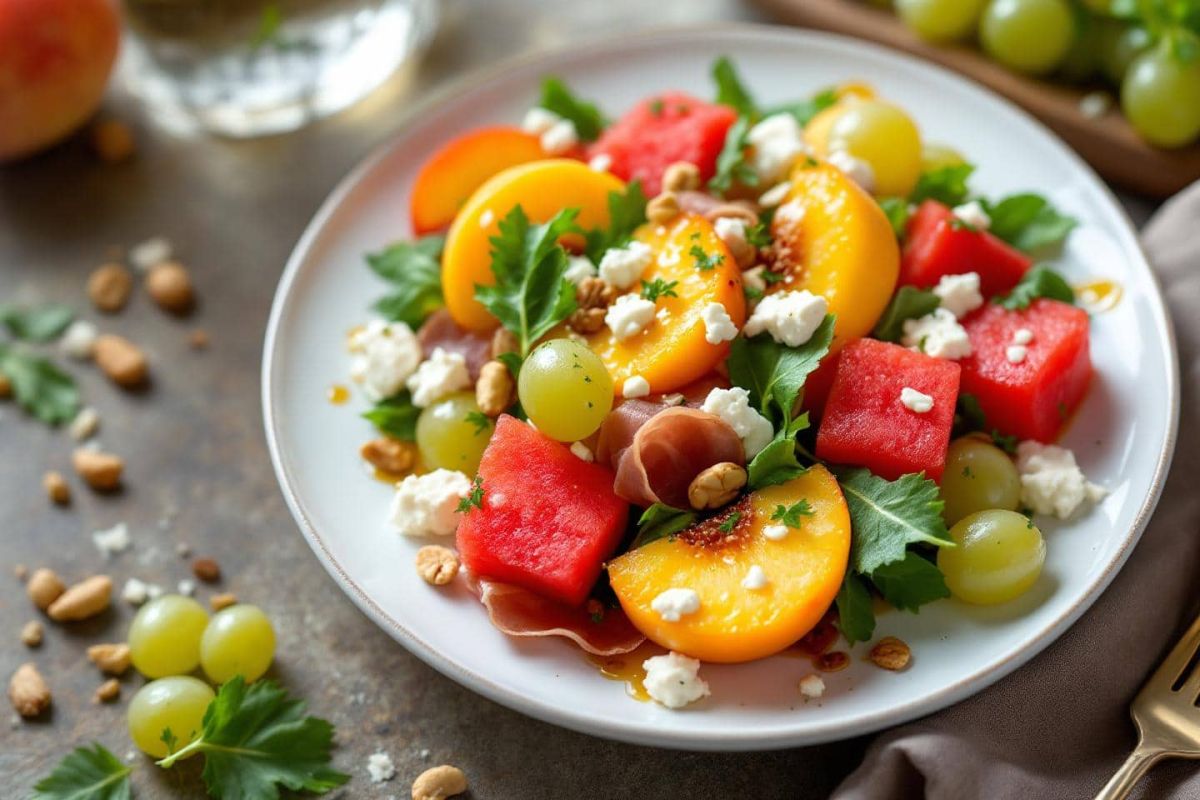 De l'effervescence d'un barbecue estival aux dîners improvisés entre amis, la salade se transforme et prend le devant de la scène dans la gastronomie française. Oser combiner des fruits ensoleillés avec des éléments salés est une façon de prolonge les plaisirs de l'été tout en restant à la maison. La douceur d'une mangue associée à des crustacés ou le croquant d'un concombre mêlé à la pastèque sont des associations qui éveillent les sens. À travers cinq recettes gourmandes, ces fruits se marient à des légumes et transforment le salé en une aventure audacieuse. Que ce soit avec de la mozzarella, de la feta, du roquefort ou du jambon cru, chaque combinaison dévoile une nouvelle facette de ces plats colorés qui égayeront vos tables.