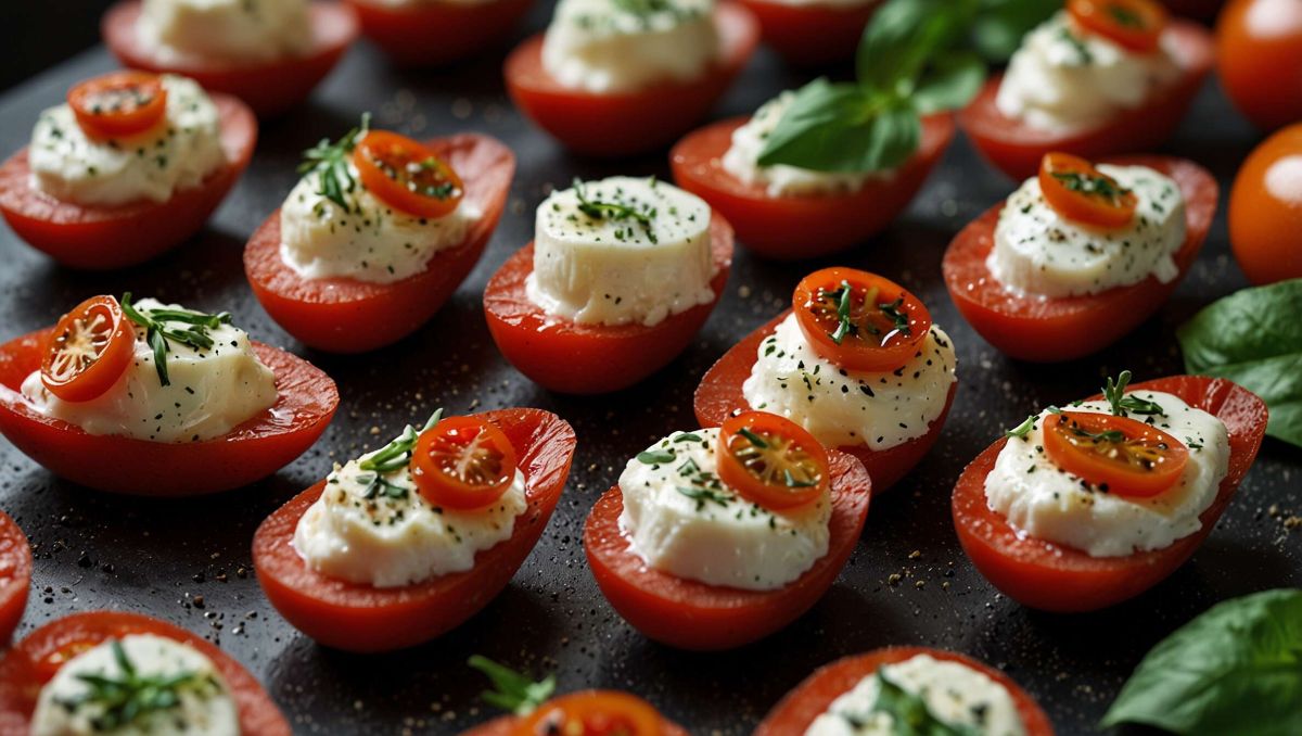 Cette recette s’inspire du plat italien classique, la caprese. Combinant la fraîcheur des tomates, la douceur de la mozzarella et le parfum du basilic, ces bouchées évoquent l’été dans chaque bouchée !