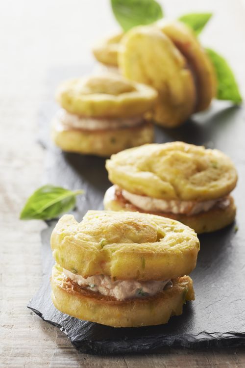 5. Assemblez en plaçant une couche de garniture au fromage entre deux coques de quenelles. Servez immédiatement pour profiter de leur texture croustillante et de leur goût savoureux.