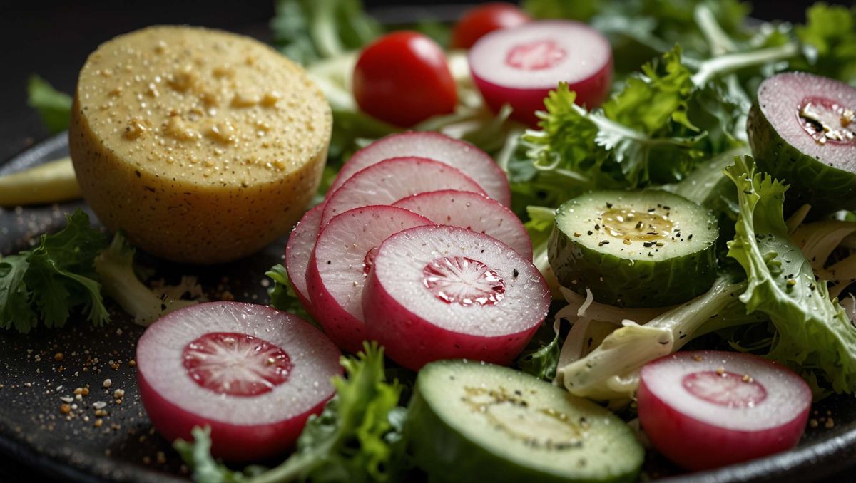 Plongez dans une expérience gustative unique avec cette salade verte et radis à la ciboulette. Parfaite pour un déjeuner léger ou comme accompagnement, elle saura ravir vos convives grâce à sa simplicité et sa fraîcheur.