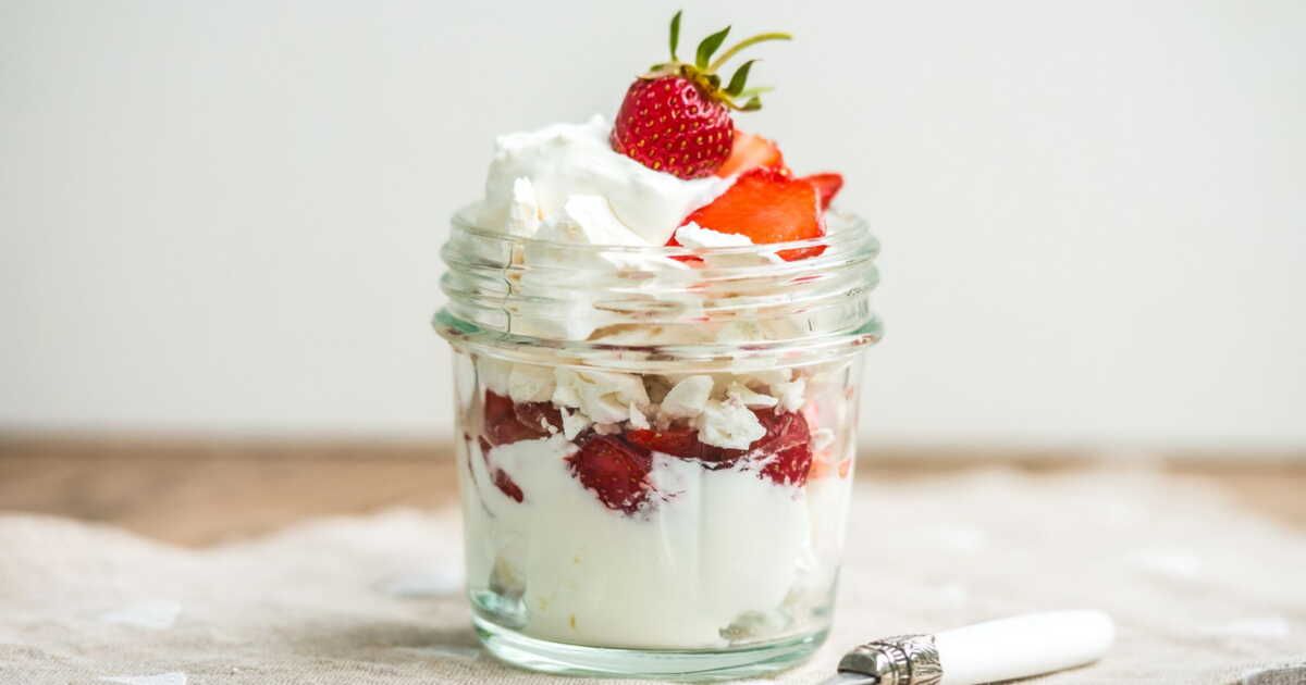 - Répartissez le mélange dans des verres et décorez avec les fraises et les meringues restantes.
