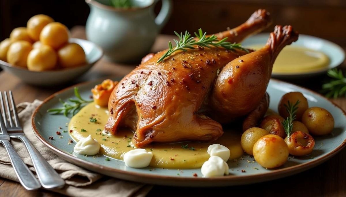 Le faisan rôti à la crème de girolles et pommes de terre est un plat d'une finesse remarquable. Alliant la tendreté du faisan à la richesse des girolles, il est parfait pour un repas de fête. Avec cette recette, vous pourrez impressionner vos hôtes tout en restant dans un registre accessible.