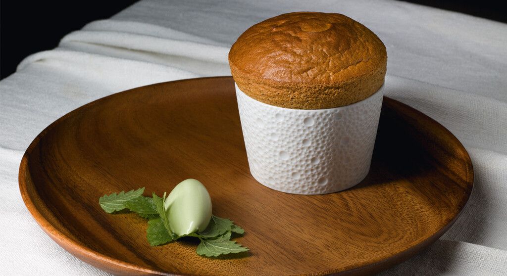 Savourez : Une fois les soufflés cuits, servez-les immédiatement, accompagnés d’une quenelle de glace à la mélisse.