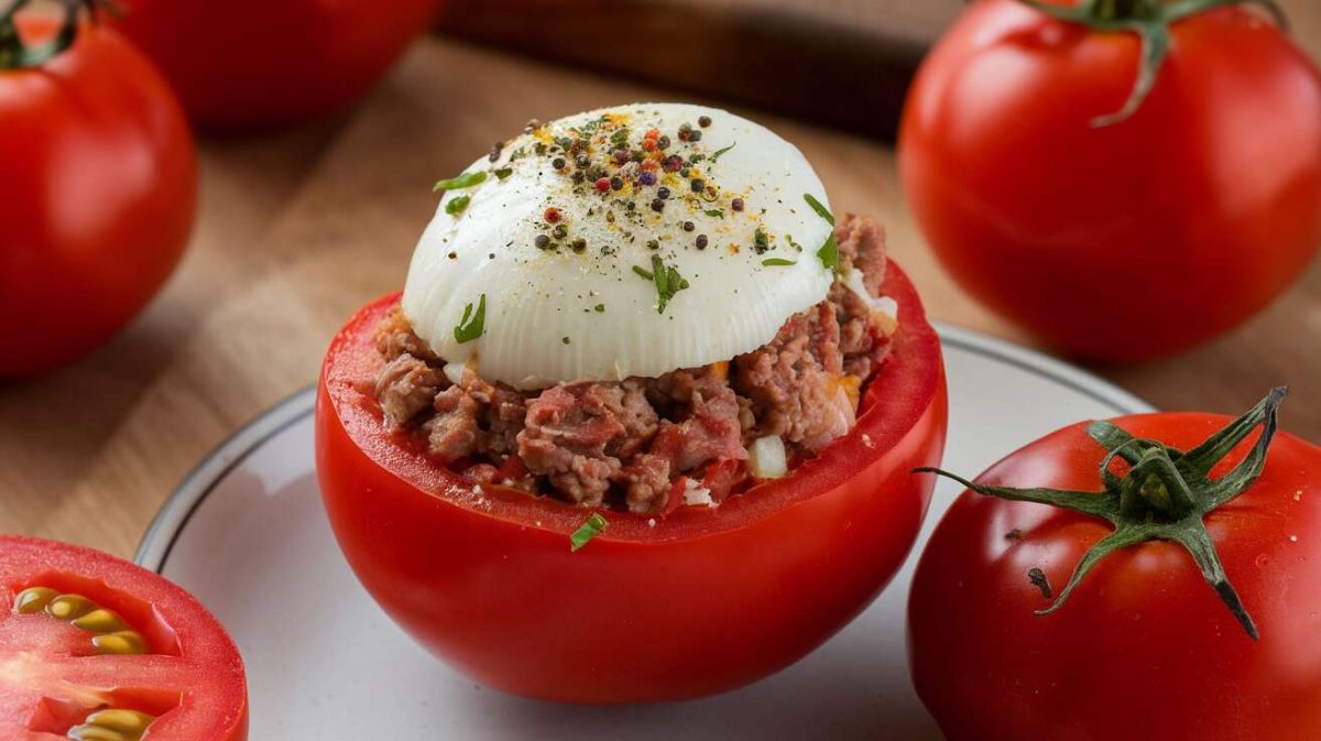 Pour sublimer vos tomates farcies, servez-les dans un beau plat en grès, délicatement posées sur un lit de salade verte qui apportera fraîcheur et couleur à votre table. Rappelez-vous, la présentation compte autant que le goût pour impressionner vos invités !